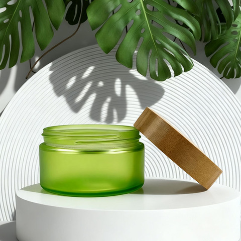 50ml 50g 대나무 뚜껑 녹색 젖빛 유리 화장품 항아리 바디 scub 얼굴 크림 화장품 포장 용기