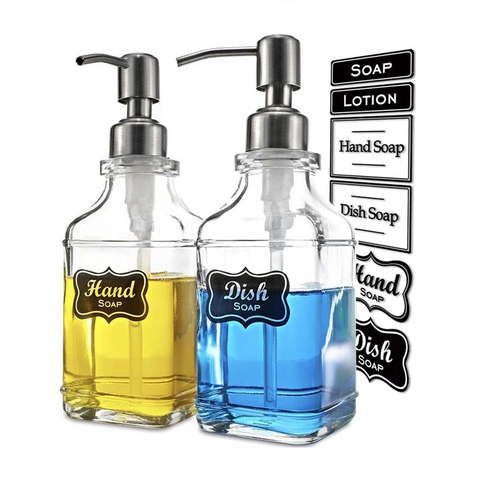 18OZ Clear Glass Soap Dispenser Garrafa Quadrado Forma Aço Inoxidável Bomba Mão Líquido Sabão Garrafa Conveniente Bomba Pulverizador de Vedação