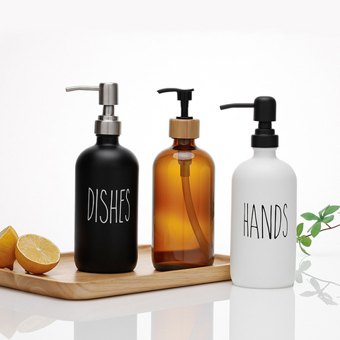 500ML Glass Soap Dispenser Garrafa Recarregável De Vidro Líquido Mão Sabão Garrafa Shampoo Garrafa Com Aço Inoxidável ou Bomba De Bambu