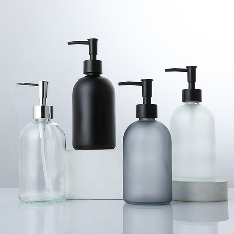 330ml 400ml Vidro Vazio Saboneteira Garrafa Shampoo Dispenser Garrafa De Vidro Preto Claro para Banheiro